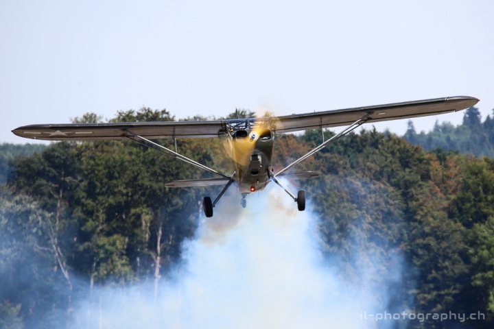 09 Stinson L-5 mit Rauchpatrone. Datum 11.08.2018 Stinson L-5 mit Rauchpatrone.