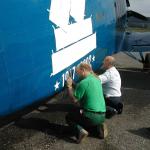 Anbringen vom Schriftzug.