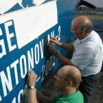 Anbringen vom Schriftzug.