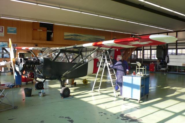 08Der Stinson wir nochmals auf sein Korrektheit überprüft, bevor er wieder in Betrieb genommen werden kann.
