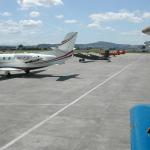 Die Antonov reiht sich neben dn Militärflugzeugen auf.