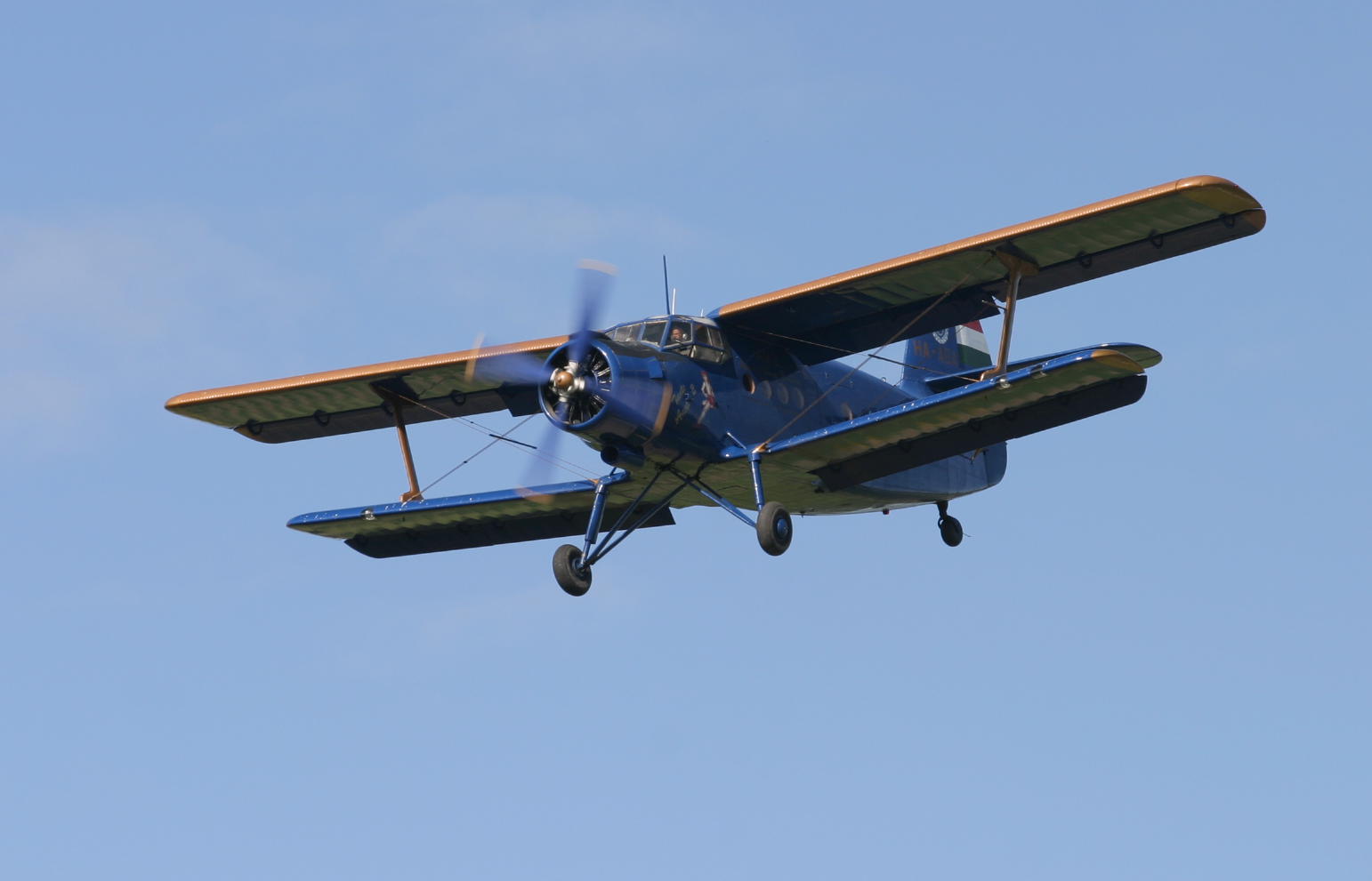 In AN-2 in der Landekonfiguration.