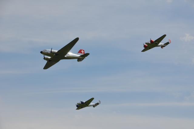 03 Formation DC-3 und zwei Beechcraft B18. Datum 14.06.2014 Formation DC-3 und zwei Beechcraft B18.