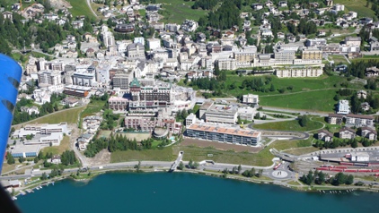 Einflug auf Samedan mit Blick nach St. Moritz.