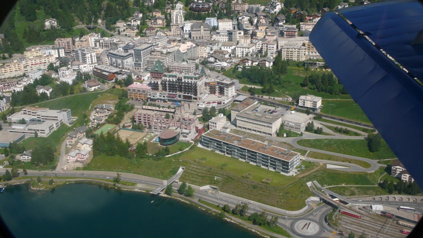 Im Anflug auf Samedan die Stadt St. Moritz.