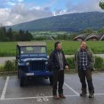 Organisator vor seinem Jeep der Royal Air Force.