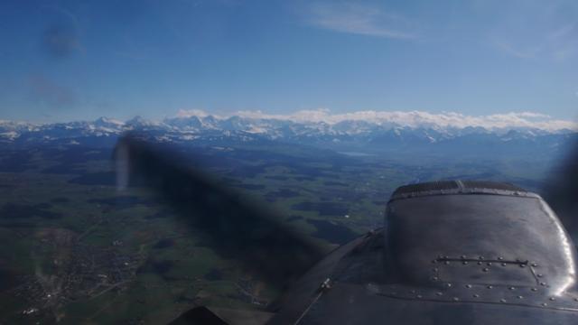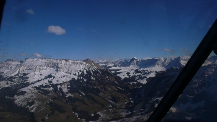Vor uns die Berneralpen, Bildmitte der Thunersee.