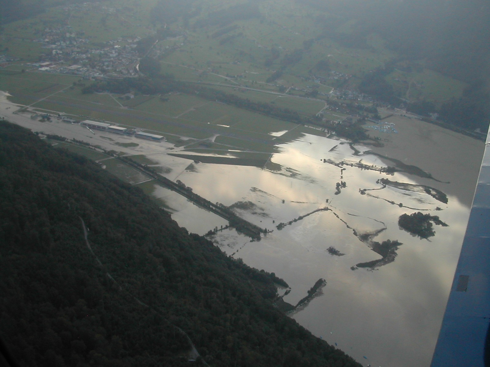 Grosse Überschwemmung auf dem Flugplatz Bern-Belpmoos.