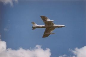 Das wohl eleganteste Kampfflugzeug Hunter hebt ab.