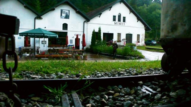 Vor dem Eingang in das Bergwerk.