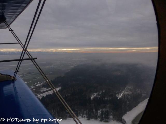 Wir steigen über die Nebelbank.