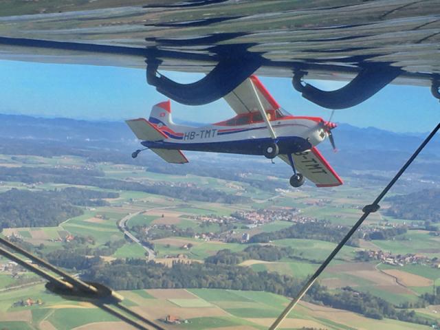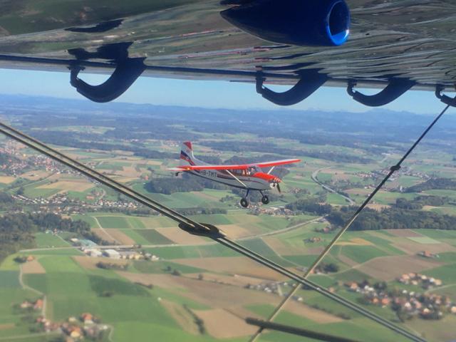 Eine Cessna kommt in Formation.