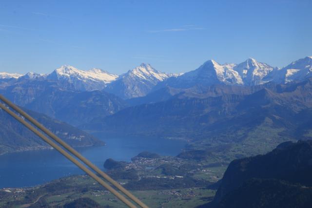 Vor uns der Thunersee und Eiger, Mönch und Jungfrau.
