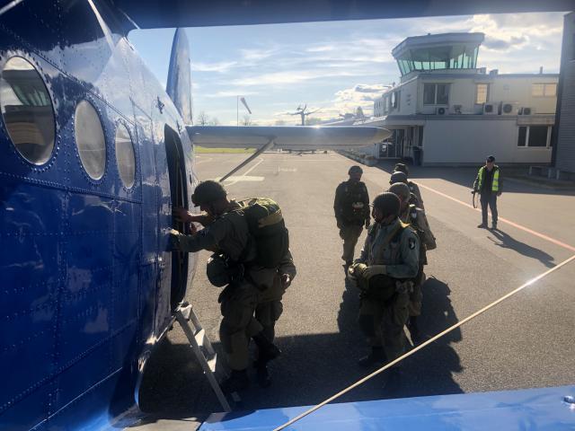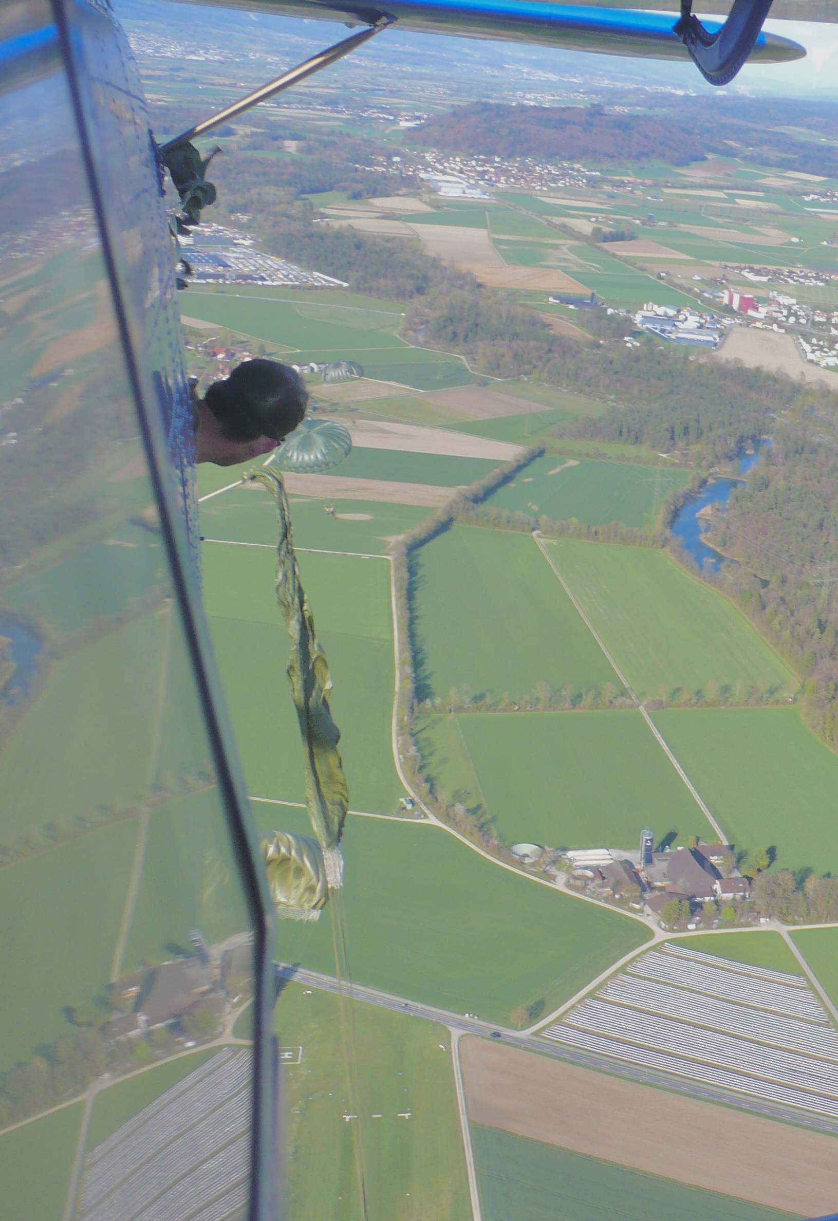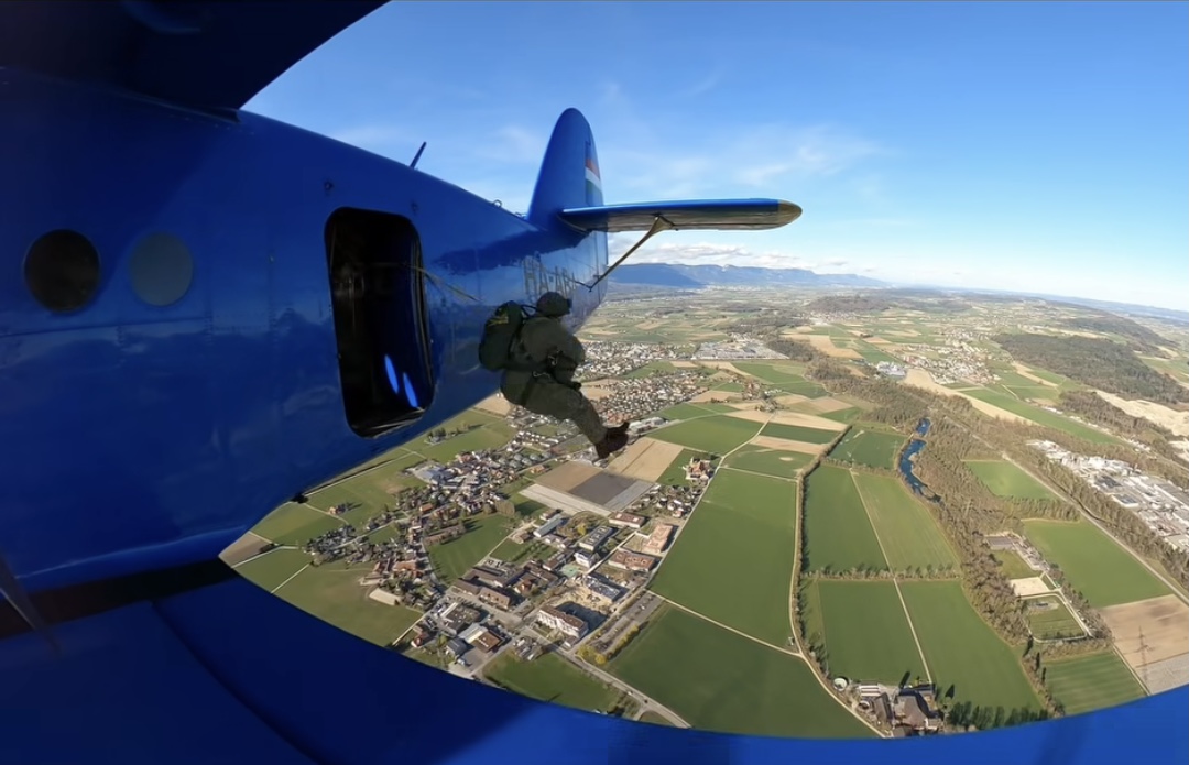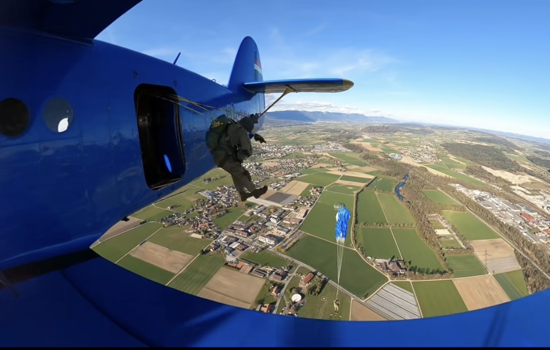 Ein weiterer Springer verlässt das Flugzeug.